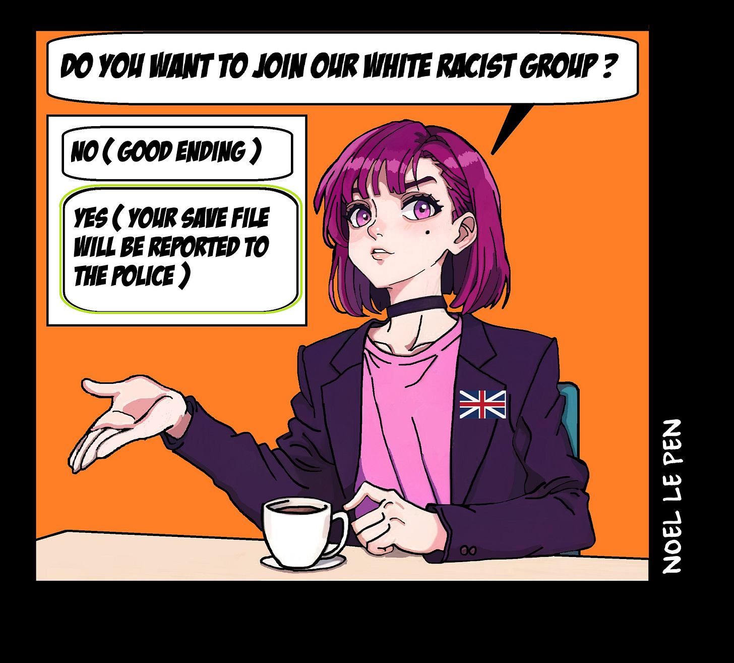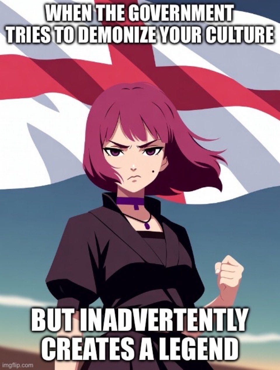 And where they really went wrong is the “Villain” leading poor Charlie astray from the Pro-Social Values of Globalism and into British Nationalism was a purple-haired Goth girl with ah choker named Amelia. And the memers of the world embraced her as a symbol or England.