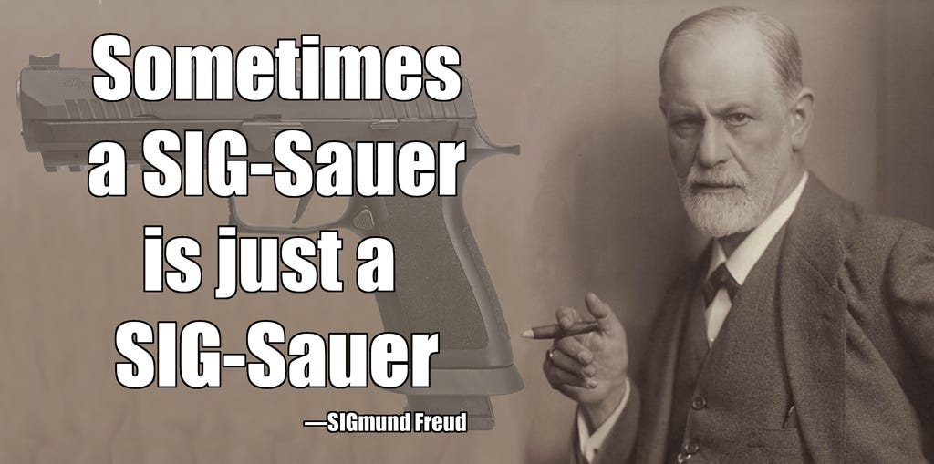 I’ve been making that joke for years. Finally decided to put it to a picture when the SIG 320 started making the news again. Helps if you mush the pronunciation of SIG-Sauer so that it sounds more like Cigar.