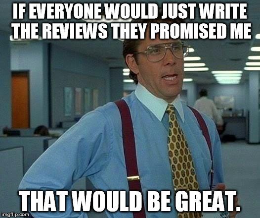 Good reviews, or 4- or 5-star ratings really really help your favorite writers on Amazon.